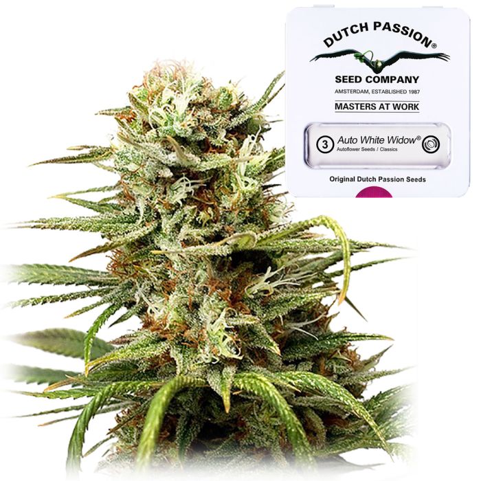De beroemde White Widow autoflower van Dutch Passion. Een kruising tussen de gefeminiseerde White Widow en de Ruderalis. Deze autoflower geeft iedere kweker plezier, want hij is geschikt voor zowel de beginnende als de ervaren kweker. De soort staat bekend om zijn hoge opbrengsten en krachtige high.